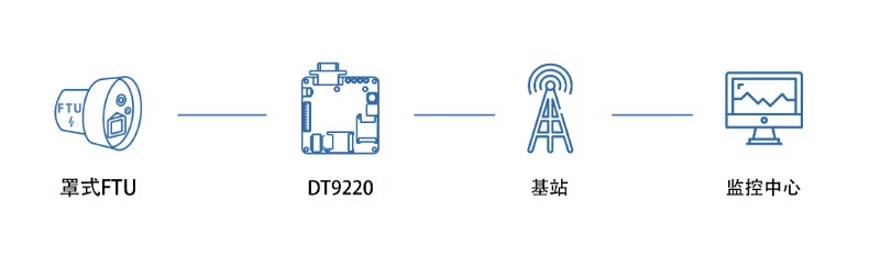 借助運營商網絡監控FTU裝置,實現遙測、遙信、遙調及故障監測,用DT9220與配電自動化主站通信,提供開關狀態、電能參數及各類故障信息,